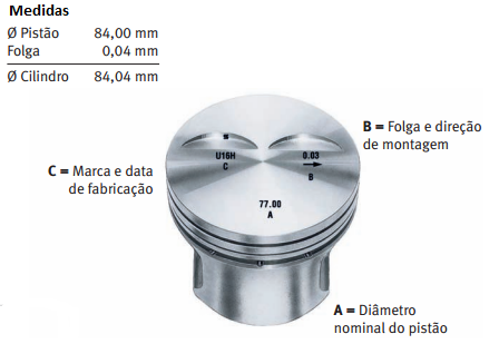 Por padrão os fabricantes de peças de motores constrói as suas peças de reposições nas mesmas proporções das originais e essas medidas vem gravadas nas peças ou nas tabelas disponibilizadas pelos fabricantes do motor e todas com certificação do INMETRO.