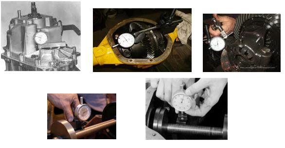 - Folgas de dentes de engrenagens de câmbios, diferenciais;